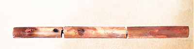 海昏侯墓出土文物中,包裹着医用毫针的玉管。江西省文物考古研究院供图